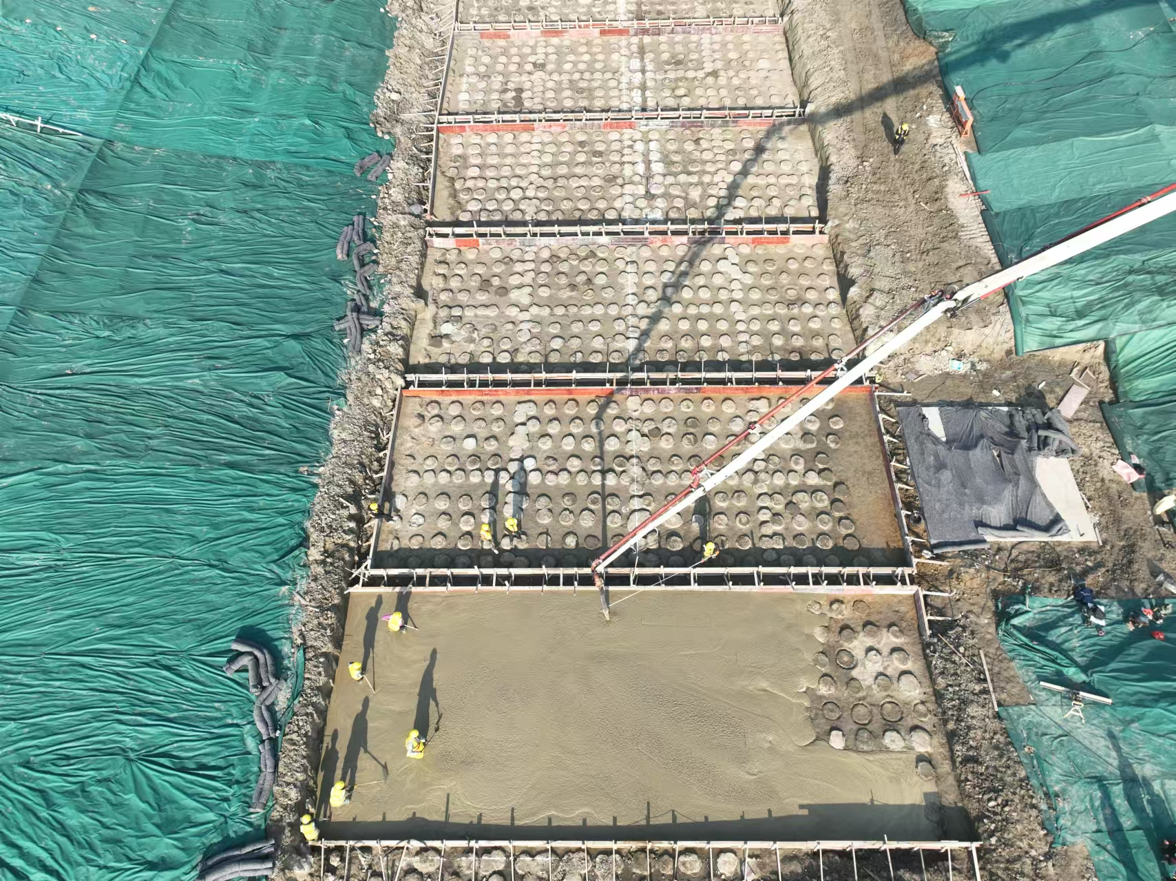 自開工以來,項(xiàng)目部全方位統(tǒng)籌、多措并舉,集中優(yōu)質(zhì)資源,多班分組同步作業(yè),不分晝夜搶抓工期,并在夜晚安排專人駐點(diǎn)現(xiàn)場(chǎng)值班,實(shí)時(shí)掌握施工進(jìn)度,確保各項(xiàng)安全、質(zhì)量管理工作穩(wěn)步進(jìn)行。在穿堤涵及防洪閘6塊底板塑性混凝土褥墊層澆筑過程中,項(xiàng)目團(tuán)隊(duì)強(qiáng)化質(zhì)量及安全管控工作,對(duì)冬季低溫天氣混凝土澆筑采取了防凍劑、覆蓋等相關(guān)措施,確保澆筑質(zhì)量。