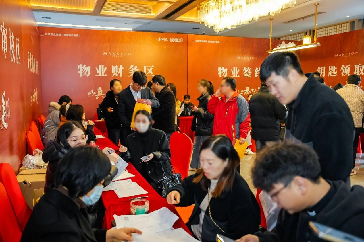 交付當(dāng)天,現(xiàn)場(chǎng)紅毯鋪地、燈籠高掛,從園林綠化到單元大堂,從電梯轎廂到入戶門廳,交付現(xiàn)場(chǎng)的每一處場(chǎng)景都做了精心的布置,為業(yè)主們獻(xiàn)上了一場(chǎng)特別的歸家禮遇。