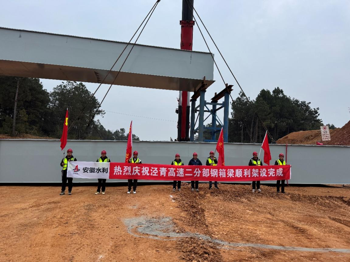 12月25日下午,隨著K12+860車行天橋最后一節(jié)鋼箱梁安裝就位,安徽水利涇青高速02標鋼箱梁順利架設完成。