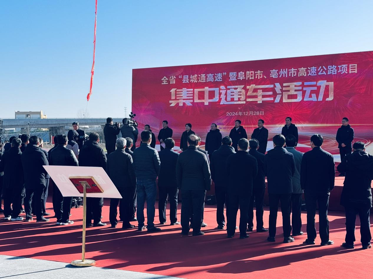12月28日,合周高速潁臨路基07標臨泉樞紐至皖豫省界段通車儀式順利舉行,安徽省交通廳、阜陽市政府、亳州市政府、安徽交控集團及相關參建單位代表參加儀式。