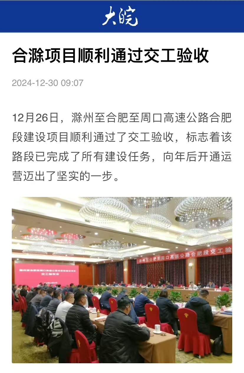 近日,安徽水利滁州至合肥至周口高速公路合肥段建設(shè)項(xiàng)目順利通過交工驗(yàn)收,標(biāo)志著該路段已完成了所有建設(shè)任務(wù),向年后開通運(yùn)營(yíng)邁出了堅(jiān)實(shí)一步,受到大皖新聞等媒體關(guān)注報(bào)道。