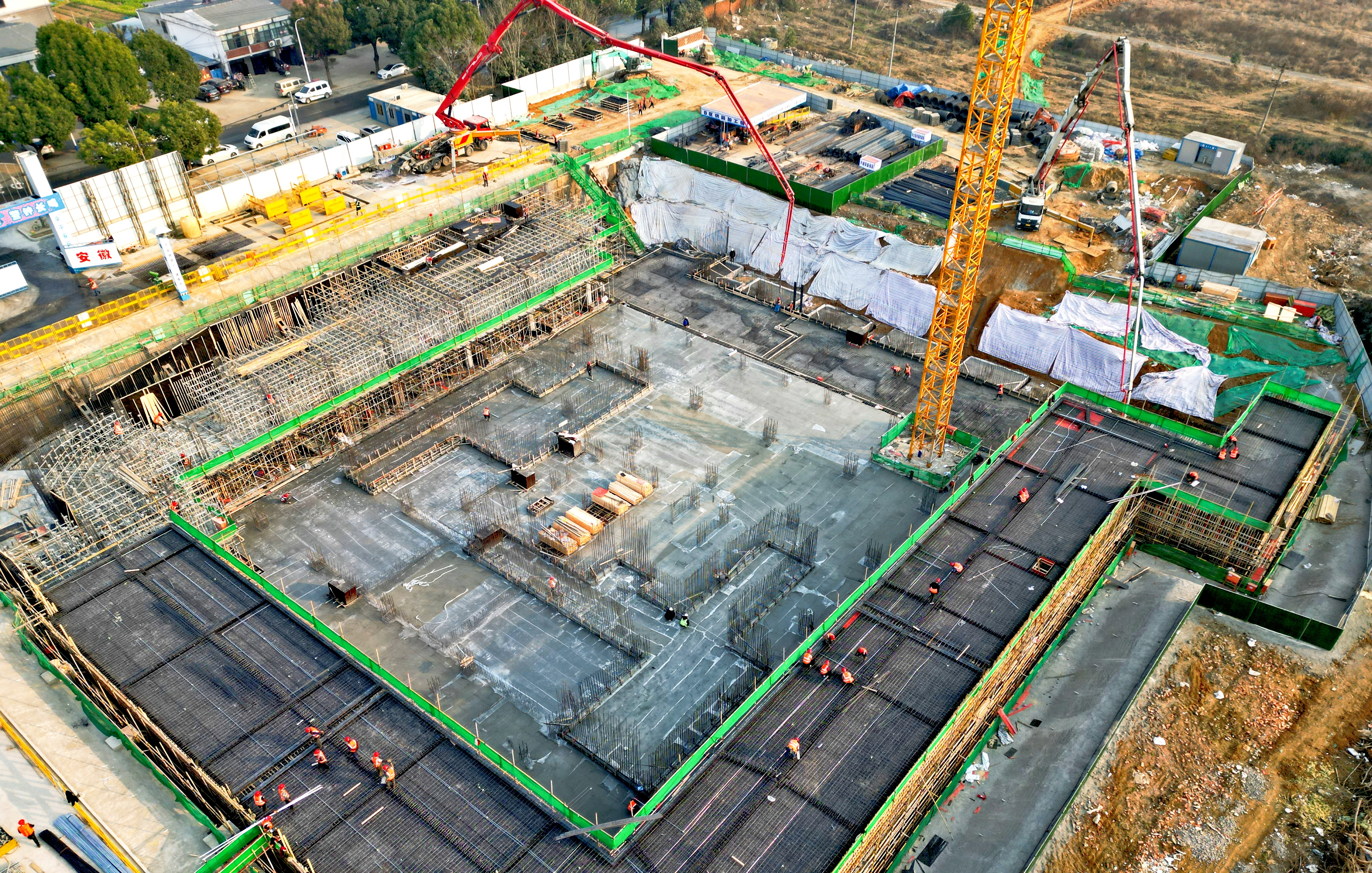 自開工以來,項目始終堅持以建設(shè)“七好”項目為目標(biāo),在施工過程中精心組織、科學(xué)實施。面對地庫底板鋼筋密集、抗?jié)B要求高、澆筑面積大等施工難點,項目團隊在充分評估各項施工參數(shù)的基礎(chǔ)上,制定了詳細的施工方案,明確施工流程及時間節(jié)點,制定責(zé)任清單等措施壓實安全生產(chǎn)責(zé)任,同時,在混凝土拌制、運輸和澆筑過程中,嚴(yán)格執(zhí)行質(zhì)量控制標(biāo)準(zhǔn),嚴(yán)格把控每一個環(huán)節(jié),確保了筏板澆筑的優(yōu)質(zhì)高效完成。