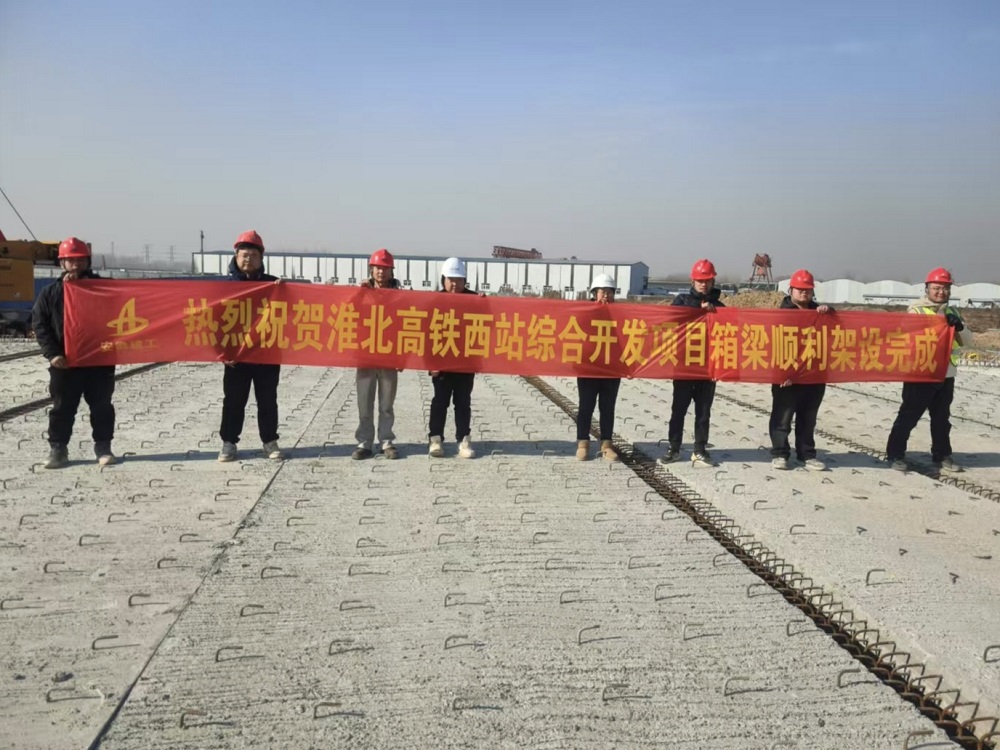 1月8日上午,淮北市高鐵西站綜合開發(fā)項目順利完成緯五路跨劉河溝橋箱梁架設(shè)。
