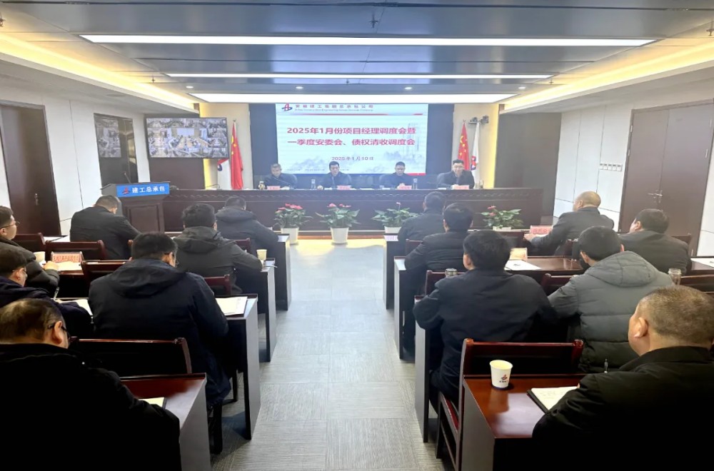 1月10日上午,建工總承包在安建國際大廈10樓會議室召開2025年1月份項目經理調度會暨一季度安委會、債權清收調度會。公司黨委書記、總經理傅宏林出席會議并講話,公司領導施海峰、王慶松、王磊參加會議并安排分管工作。