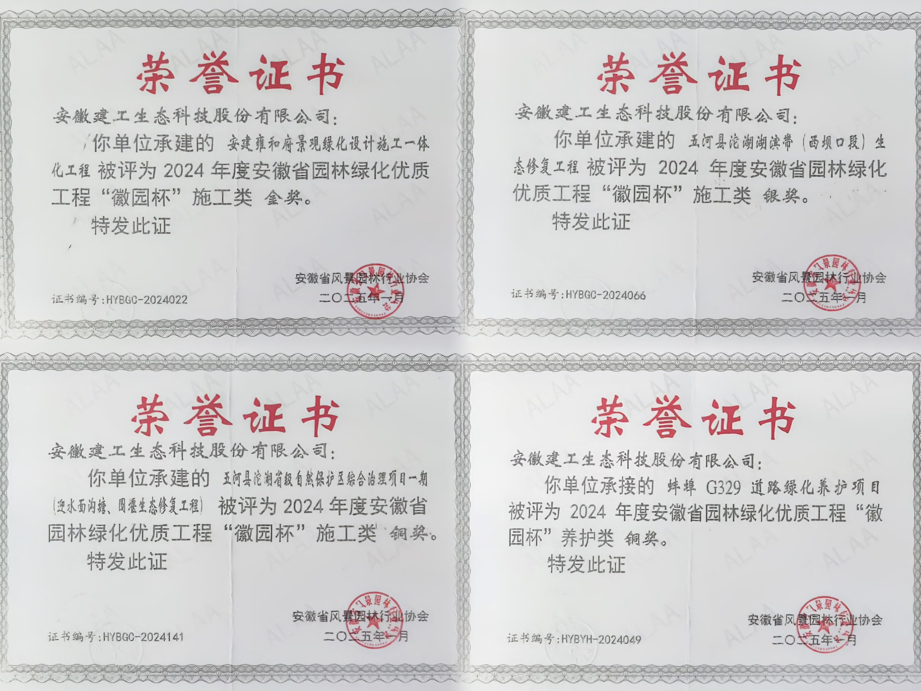 近日,安徽省風(fēng)景園林行業(yè)協(xié)會(huì)正式公布2024年度安徽省園林綠化優(yōu)質(zhì)工程“徽?qǐng)@杯”獲獎(jiǎng)名單,安徽水利所屬安徽建工生態(tài)科技股份有限公司獲多項(xiàng)榮譽(yù)。