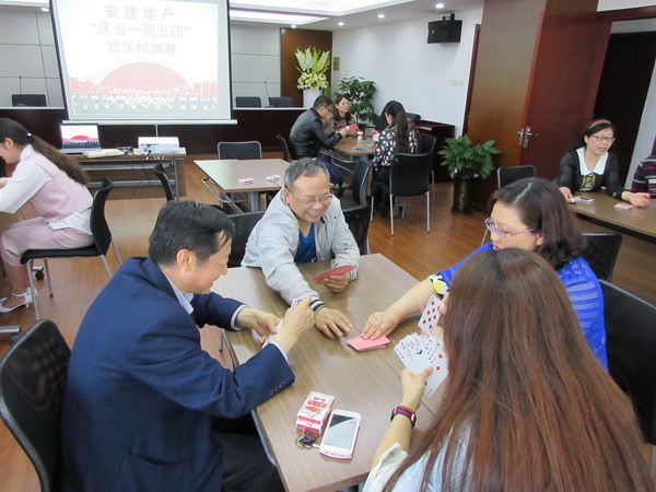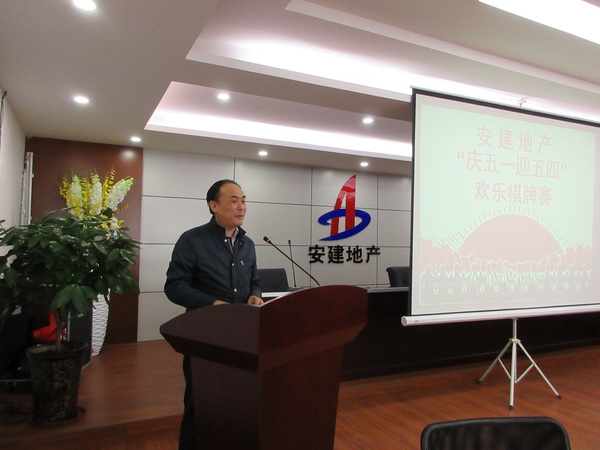 為熱烈慶?!拔逡弧眲趧?dòng)節(jié),進(jìn)一步豐富安建地產(chǎn)公司員工的業(yè)余生活,緩解緊張的工作壓力,4月29日下午,安建地產(chǎn)公司舉辦了“迎五一慶五四”歡樂(lè)棋牌賽活動(dòng),公司總經(jīng)理、黨總支書(shū)記楊斌參賽并進(jìn)行賽前動(dòng)員講話。