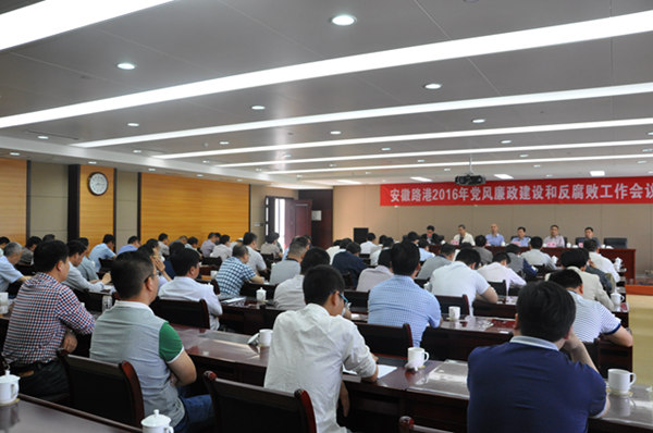 5月6日上午,安徽路港公司在省黨風(fēng)廉政建設(shè)教育基地召開2016年黨風(fēng)廉政建設(shè)和反腐敗工作會議,傳達貫徹省國資委、集團黨委黨風(fēng)廉政建設(shè)和反腐敗工作會議精神,部署了公司2016年紀檢監(jiān)察工作。公司機關(guān)部門副職及以上人員、機關(guān)全體黨員、子(分)公司領(lǐng)導(dǎo)班子成員、各項目經(jīng)理及支部書記共有98人參加會議,黨委副書記馬斌主持會議。