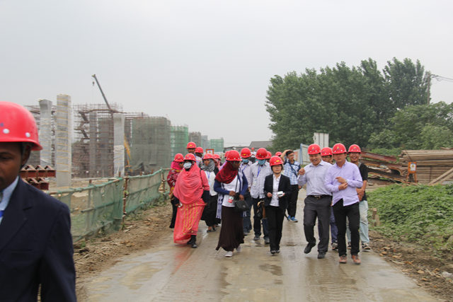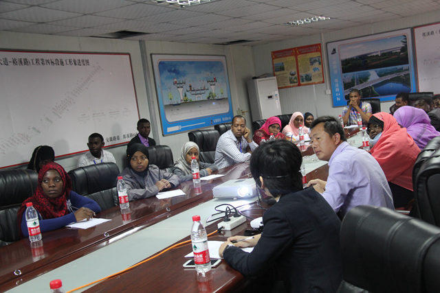 項(xiàng)目部首先向桑給巴爾客人介紹了公司基本情況以及郎溪路四標(biāo)項(xiàng)目的概況、工程質(zhì)量、進(jìn)度、安全文明管理等工作,隨后去施工現(xiàn)場進(jìn)行了觀摩。