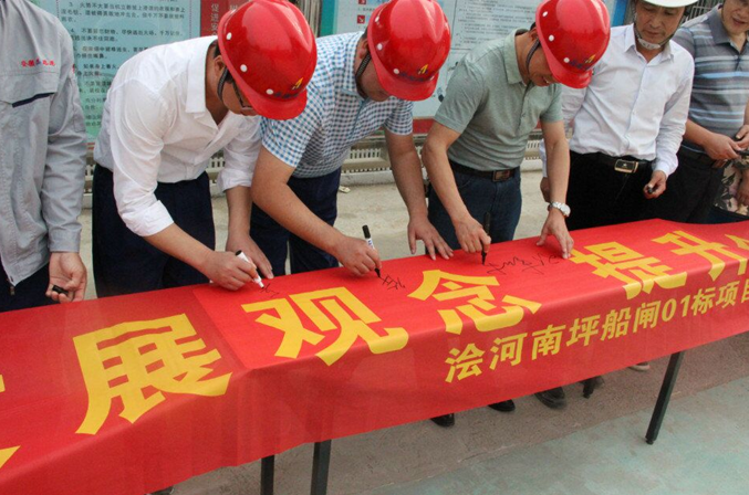 為全面提升項目安全管理層次,提高職工安全意識,6月7日上午,安徽路港澮河南坪船閘01標(biāo)項目部組織開展“安全月”宣誓簽名活動。