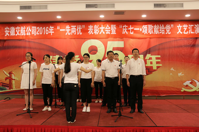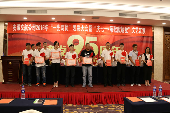為隆重紀(jì)念中國(guó)共產(chǎn)黨成立95周年,6月22日下午,安徽交航公司順利召開了2016年“一先兩優(yōu)”表彰大會(huì)暨“迎七一•頌歌獻(xiàn)給黨”文藝匯演。交航公司領(lǐng)導(dǎo)班子成員、機(jī)關(guān)全體黨員、各黨(總)支部負(fù)責(zé)人、獲獎(jiǎng)黨員、入黨積極分子共計(jì)100余人參加了會(huì)議,會(huì)議由交航公司紀(jì)委書記、工會(huì)主席李楊主持。