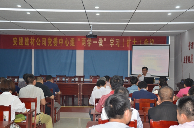 2016年6月28日上午,安建建材公司在安徽瑞特同大工業(yè)園一樓會議室召開紀念建黨95周年暨“一先兩優(yōu)”表彰大會、黨委中心組“兩學一做”學習(擴大)會議。參加人員有:公司領導、子(分)公司領導班子、機關部門副職以上人員、公司全體黨員以及受表彰的“一先兩優(yōu)”人員。會議由安建建材公司黨委副書記胡運春主持。