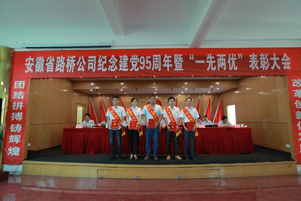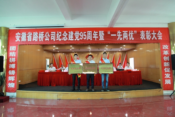 不忘初心,奮力開拓鑄就輝煌業(yè)績;堅定信仰,信心滿懷共創(chuàng)美好明天。 6月29日上午,安徽路橋公司隆重舉行紀念中國共產(chǎn)黨成立95周年暨“一先兩優(yōu)”表彰大會。安徽路橋公司中層以上黨員領導人員,各基層黨支部負責人,團委委員,受表彰的先進黨組織、團組織代表、優(yōu)秀黨員、優(yōu)秀黨務工作者和優(yōu)秀團員青年,參加集體宣誓的黨員代表共120余人參加會議。會議由安徽路橋公司黨委委員、總工程師彭申凱主持。