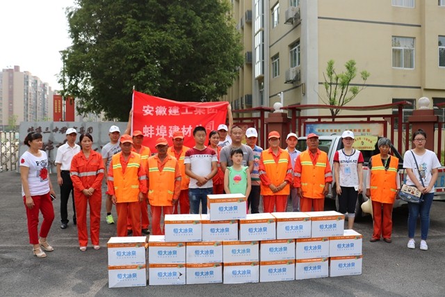 啟動儀式上,蚌埠建材志愿者團(tuán)隊(duì)和其他團(tuán)隊(duì)對籌集到的清涼包、礦泉水等防暑降溫用品進(jìn)行分配;隨后,按照公益聯(lián)盟統(tǒng)一調(diào)度,各團(tuán)隊(duì)同時(shí)出發(fā),蚌埠建材團(tuán)隊(duì)前往淮上區(qū)等地慰問環(huán)衛(wèi)工人。